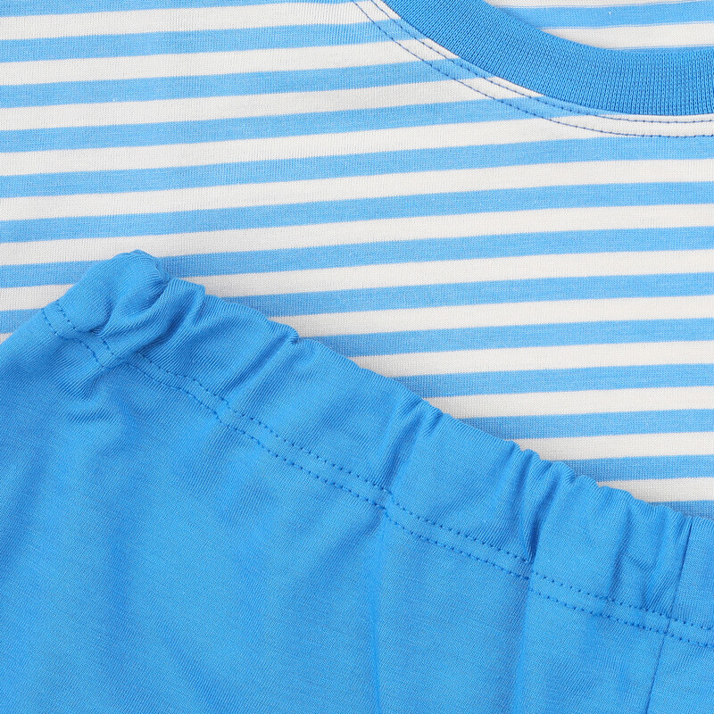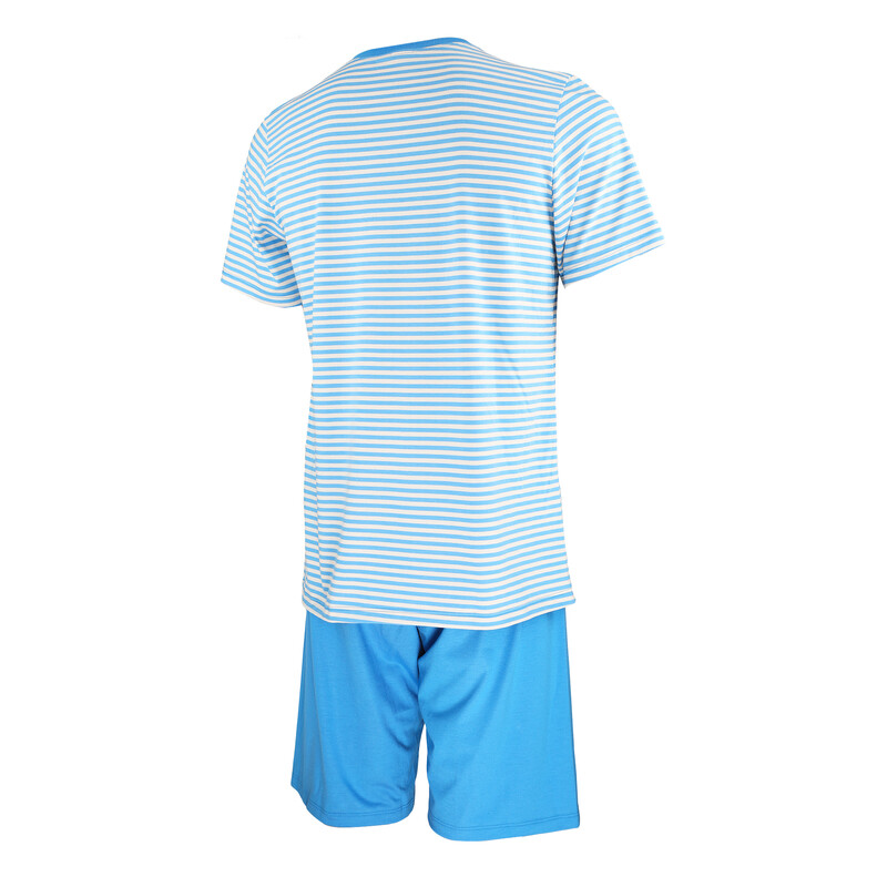Pohodlné chlapecké pyžamo s krátkým rukávem, kulatým výstřihem a decentním potiskem vrchního dílu. Krátké kalhoty s navlíkací gumou v pase.