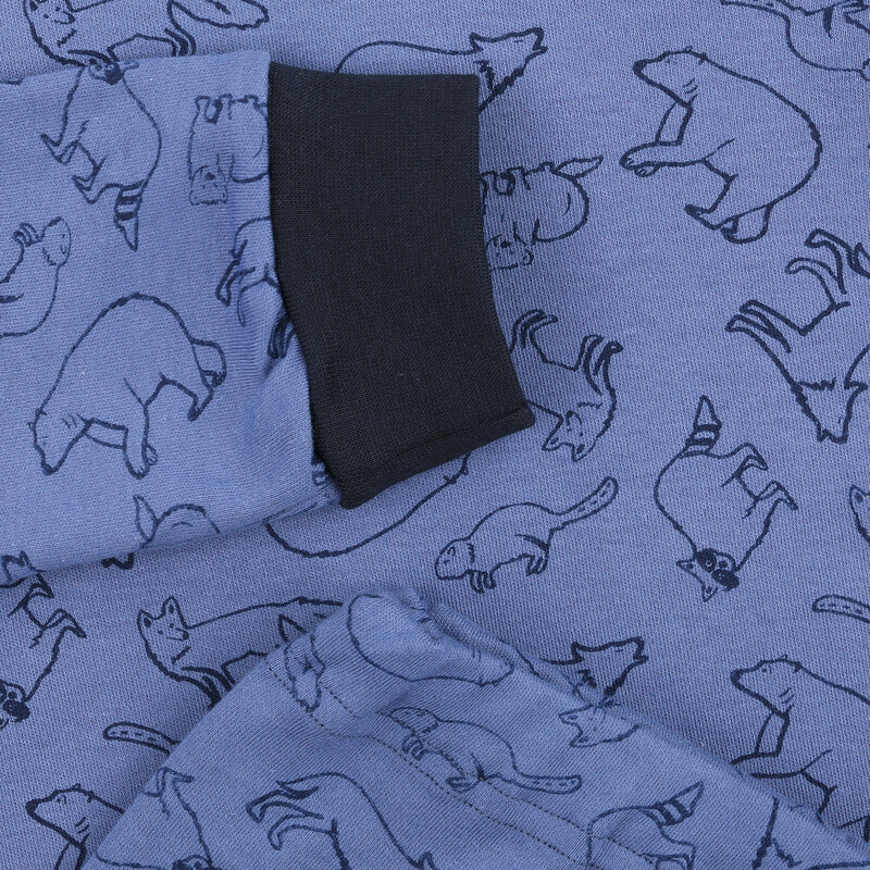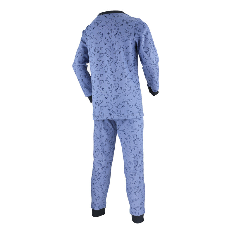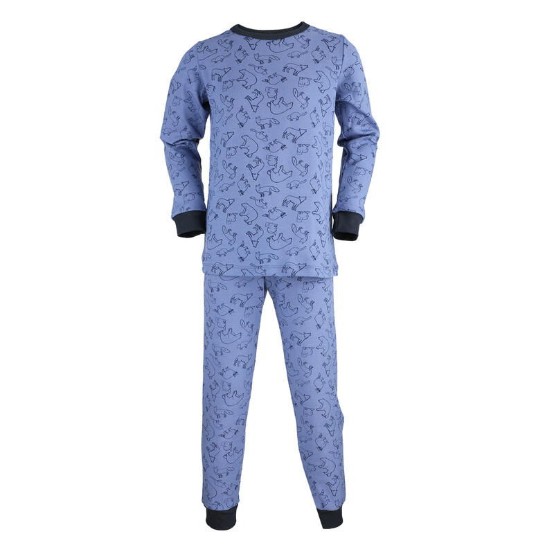 Velmi pohodlné dětské dlouhé pyžamo vyrobené z velmi příjemného bavlněného úpletu. Navlíkací guma v pasové části. Bavlněné lemy na rukávech a nohavicích.