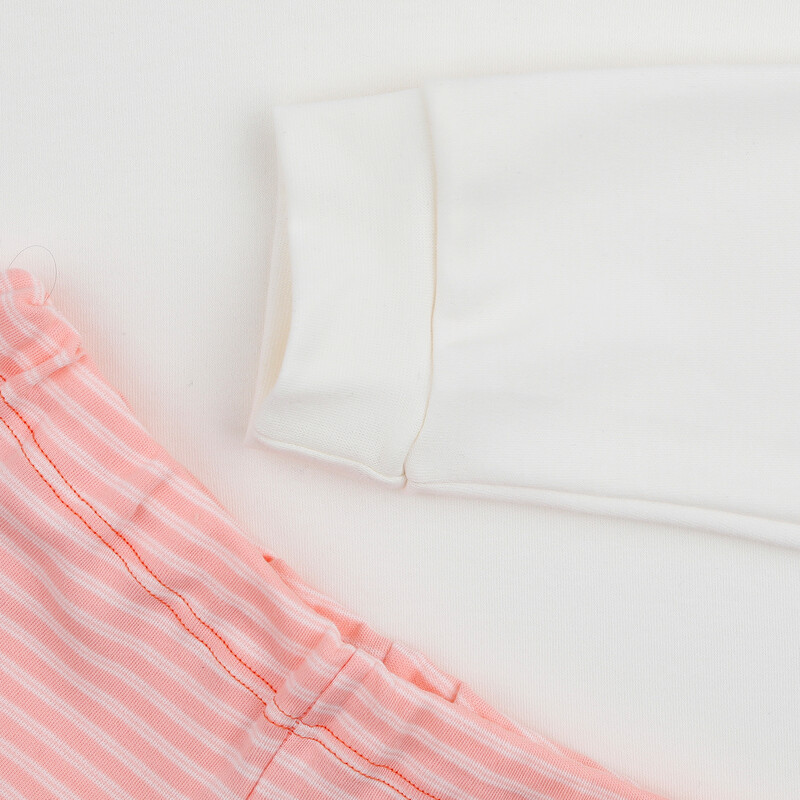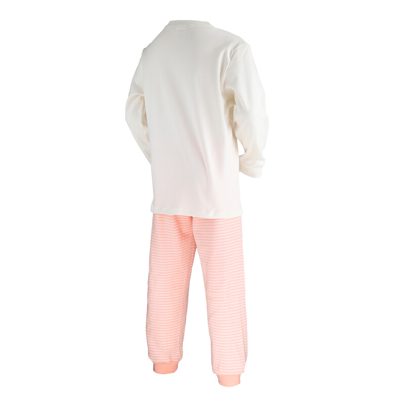 Velmi pohodlné dětské dlouhé pyžamo vyrobené z velmi příjemného bavlněného úpletu. Navlíkací guma v pasové části. Bavlněné lemy na rukávech a nohavicích.