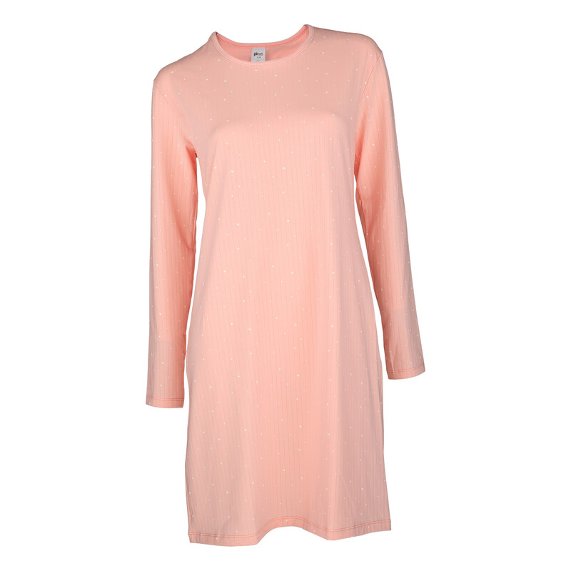 Dámská noční košile s dlouhým rukávem, kulatým výstřihem.