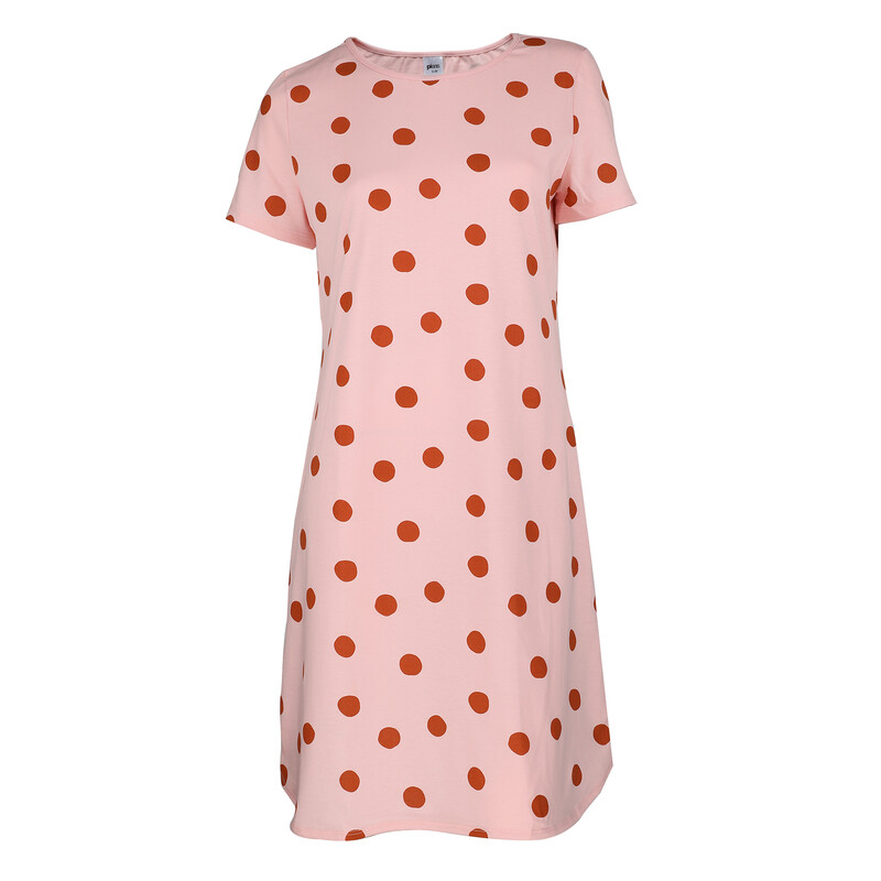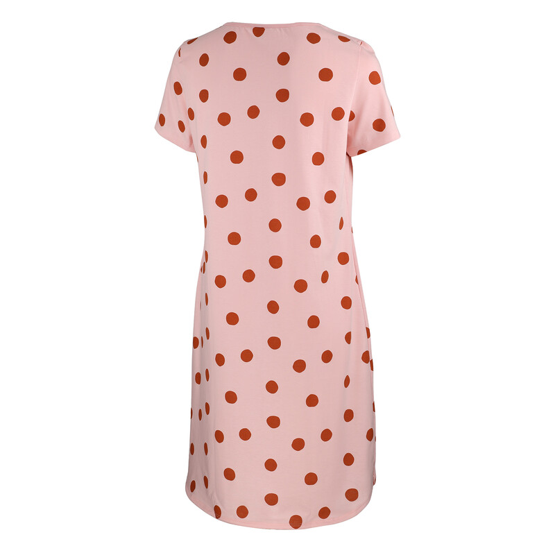 Svěží dámská noční košile s krátkým rukávem, kulatým výstřihem a rovným spodním lemem.