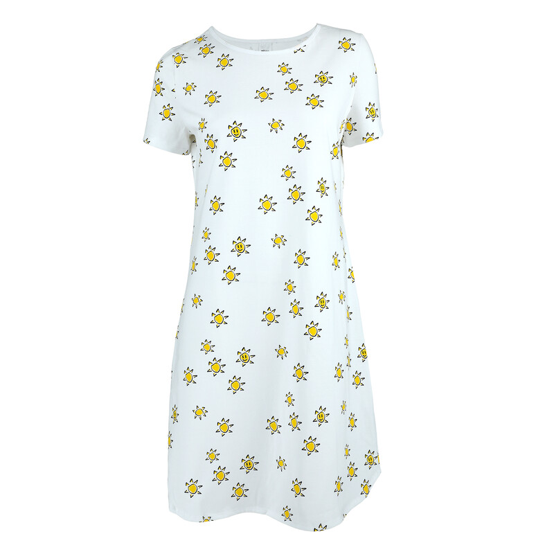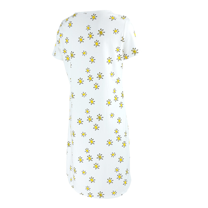 Svěží dámská noční košile s krátkým rukávem, kulatým výstřihem a rovným spodním lemem.