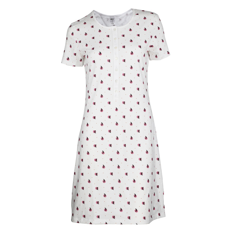 Krásná noční košile s krátkým rukávem a kulatým výstřihem s propínací légou. Vhodná i jako kojící košile. Délka : od výstřihu / zadní díl pro vel.38/S = 97 cm ; u každé další velikosti cca + o 1 cm více než předchozí velikost