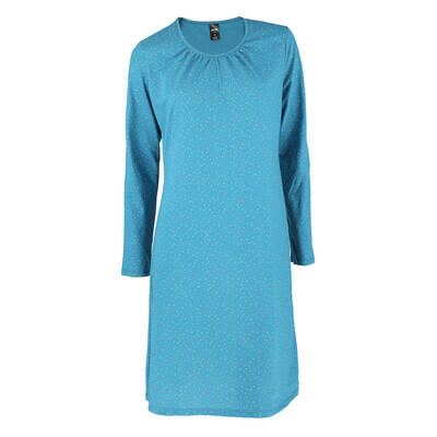 Krásná noční košile s dlouhým rukávem a kulatým výstřihem s propínací légou. Vhodná i jako kojící košile. Detail drobných bílých teček doplňuje mile zpracovaný potisk sedící lišky. Délka : od výstřihu / zadní díl pro vel.38/S = 97 cm ; u každé další velikosti cca + o 1 cm více než předchozí velikost