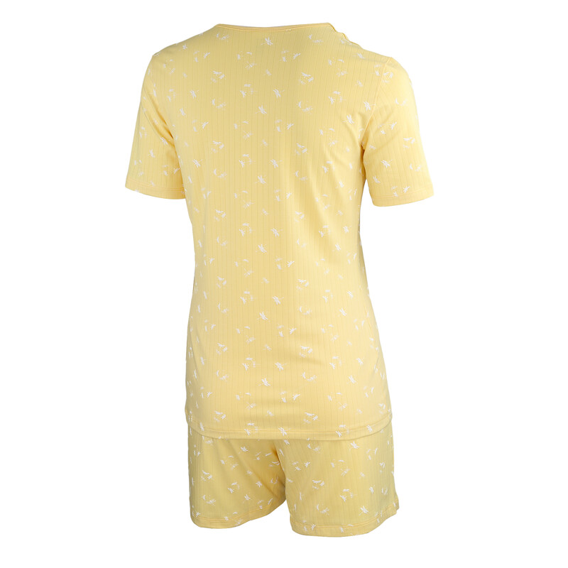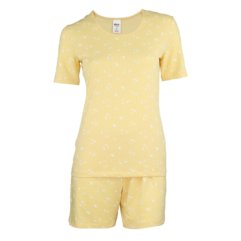 Mladistvé dámské pyžamo s krátkým rukávem a kulatým výstřihem. Krátké kalhoty se vzorem.