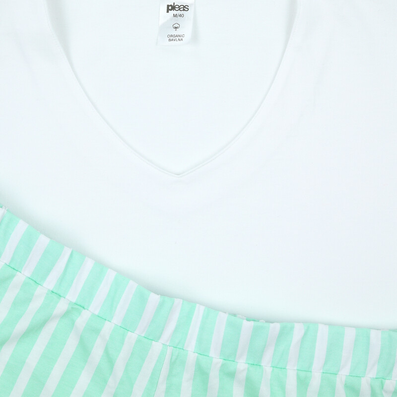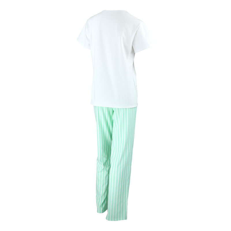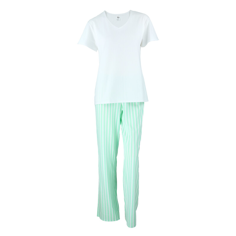 Krásné dámské pyžamo s krátkým rukávem a výstřihem do "V". Kalhoty dlouhé, volného střihu.