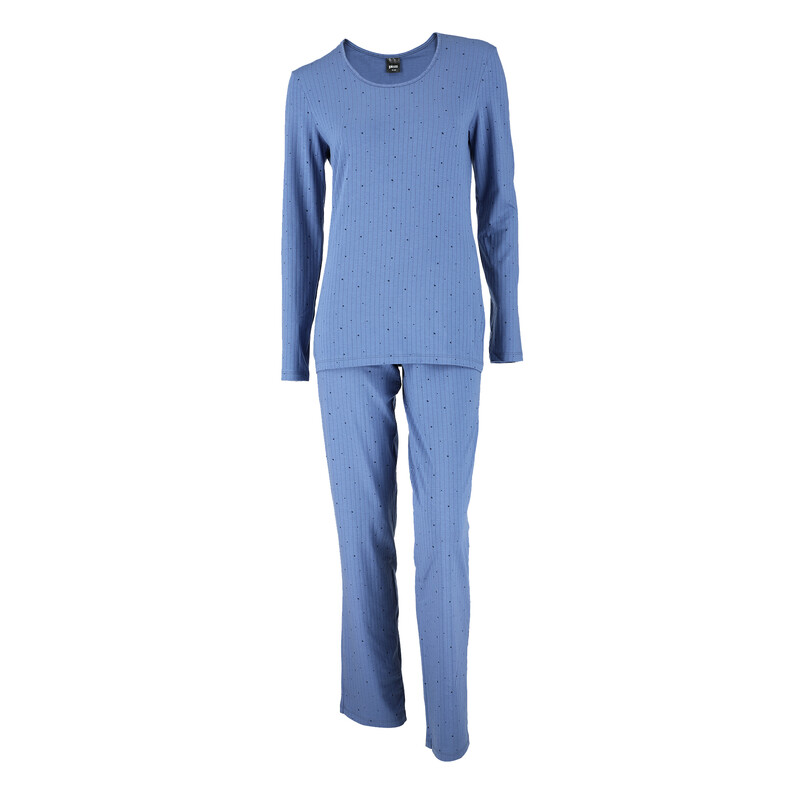 Dámské pyžamo s dlouhým rukávem bez nápletů. Volné kalhoty v pase všitá guma.